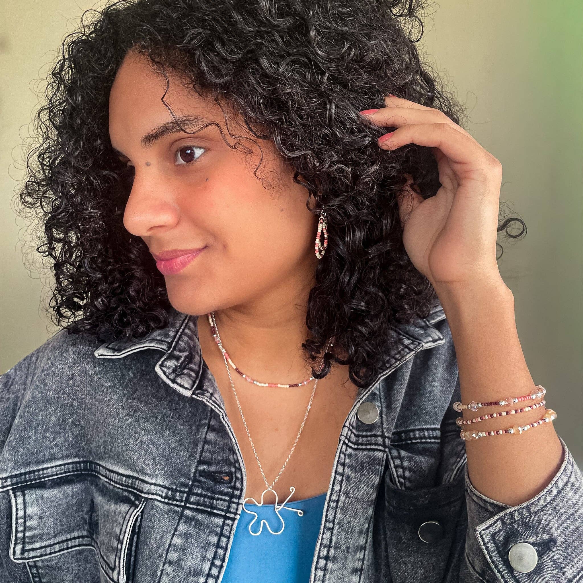 Monarch two piece beaded necklace and silver wire butterfly pendant