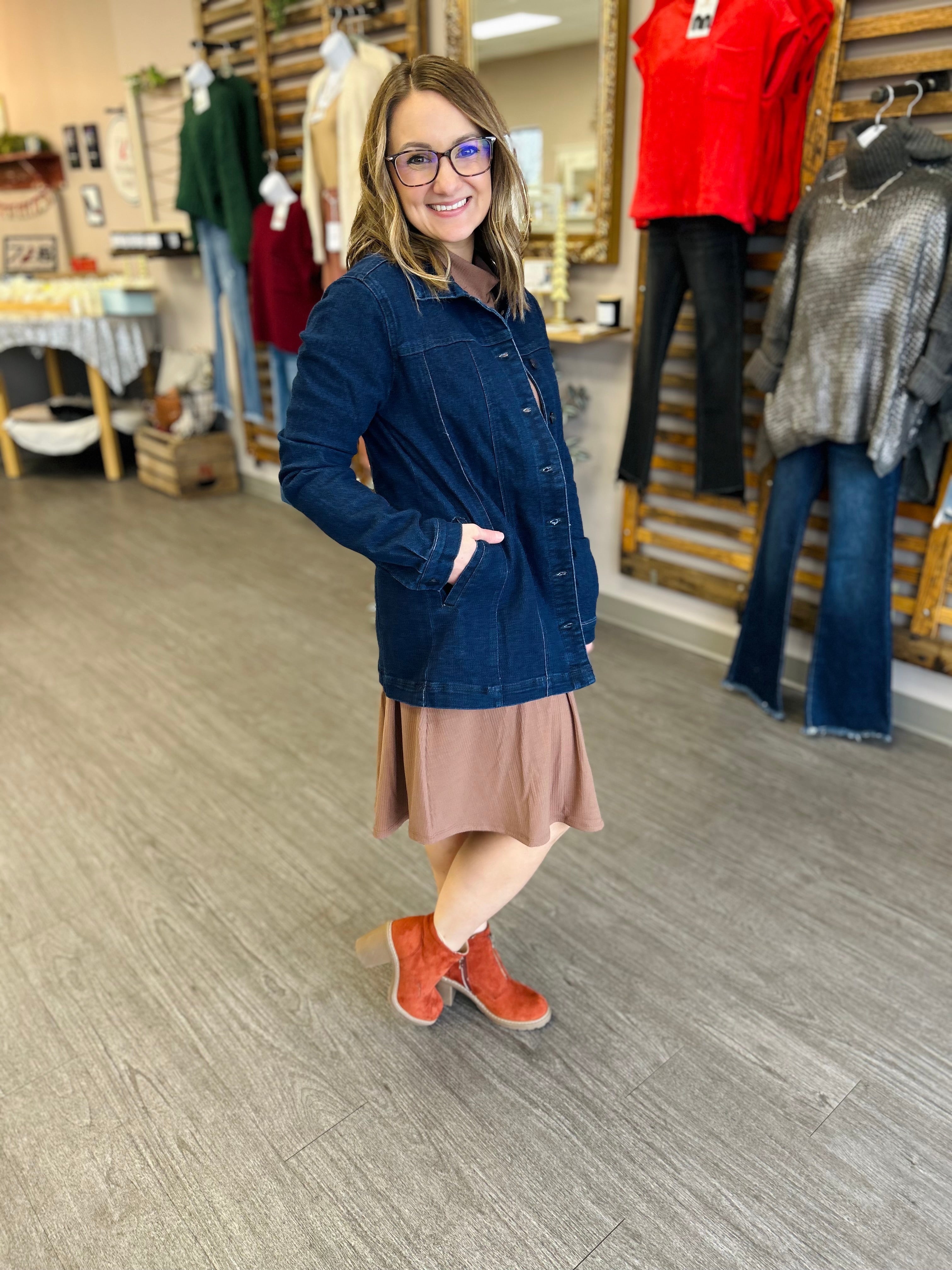 Meet your new go-to layer — the Weekend Wanderer Dark Denim Jacket. With its rich dark wash, classic fit, and just the right touch of stretch, this jacket was made for laid-back days and easy layering. Timeless, versatile, and effortlessly cool — it’s the piece you’ll reach for season after season!