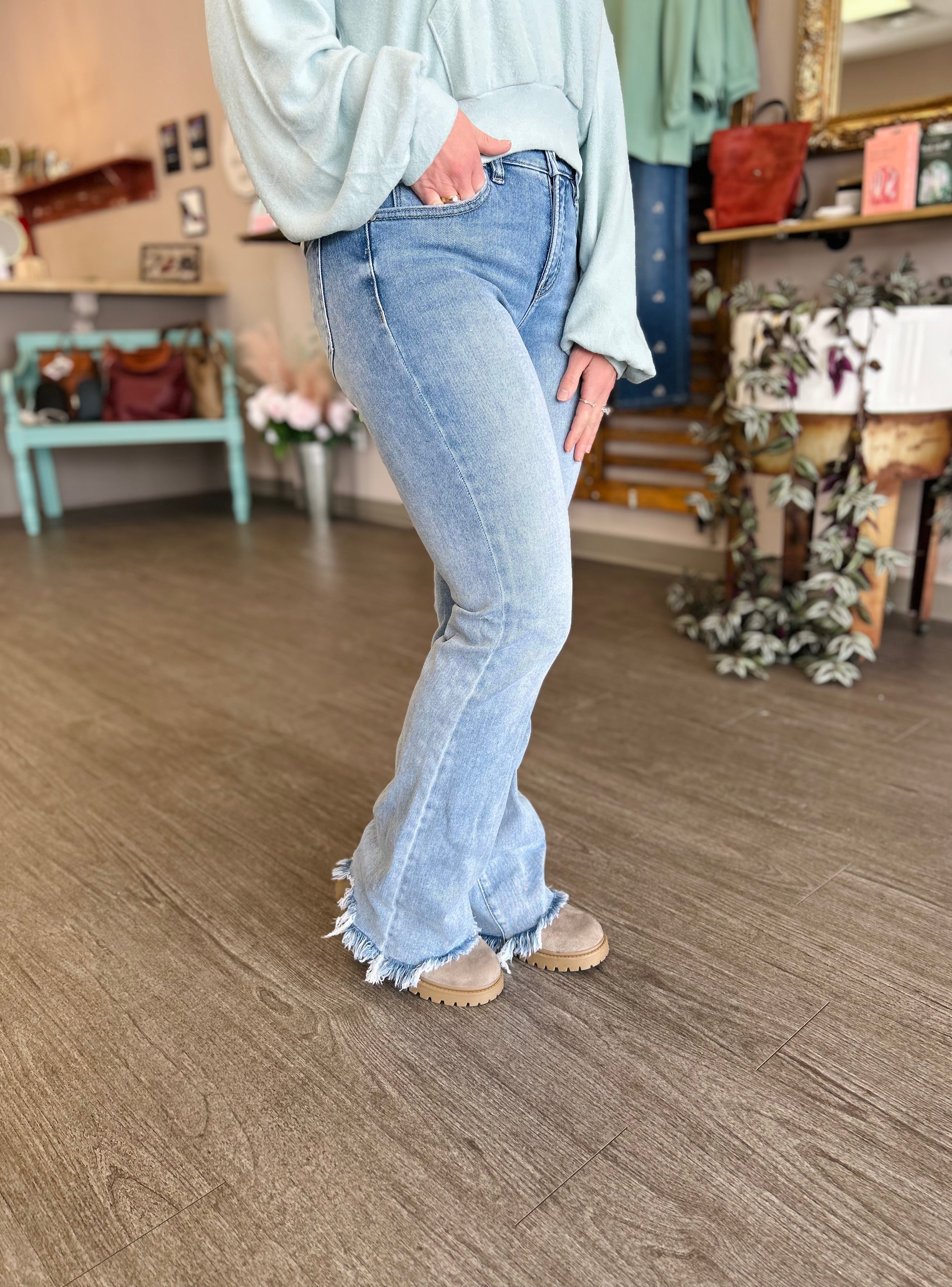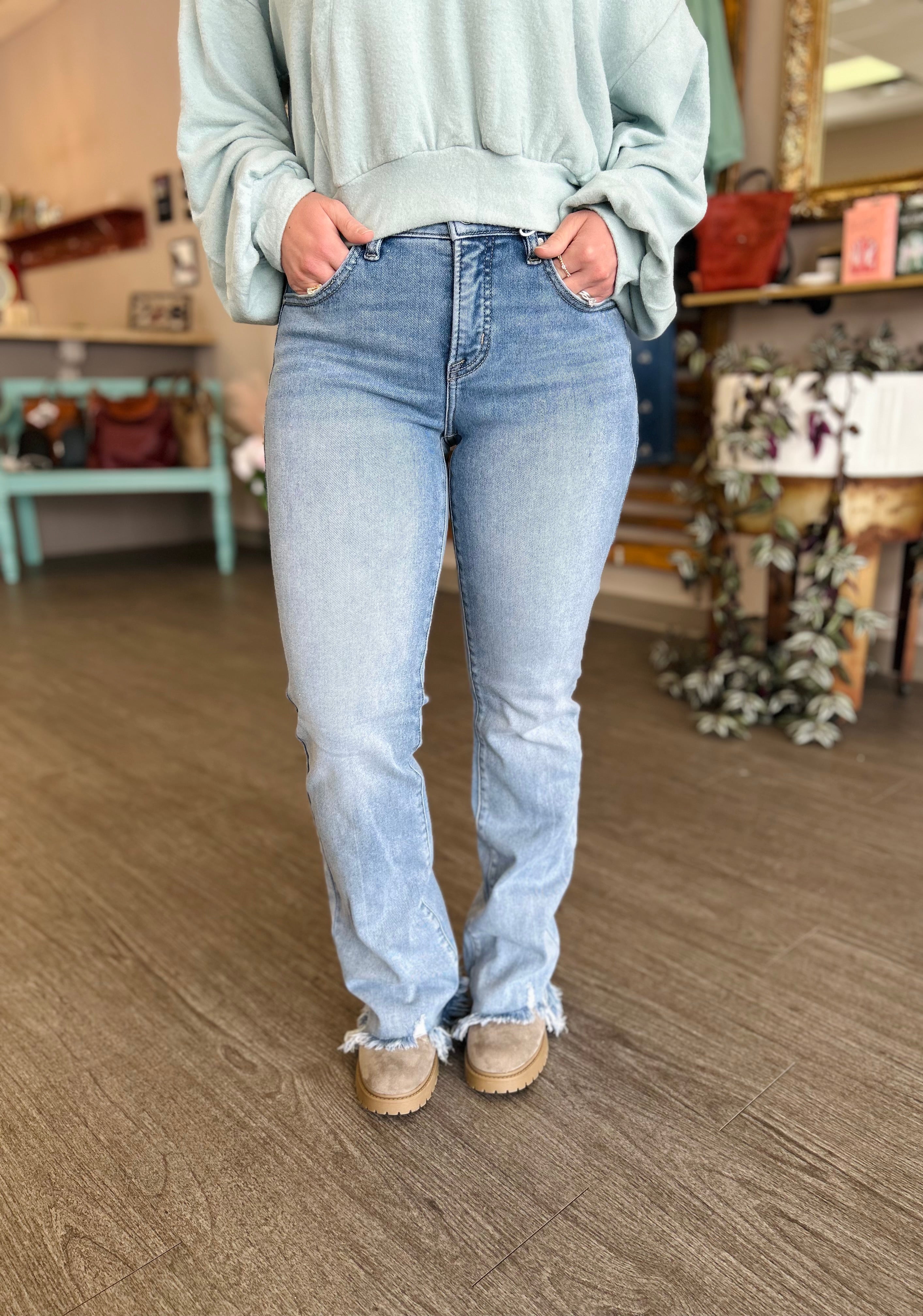 The Tummy Control Midrise Frayed Flare combines flattering structure with laid-back style for a pair of jeans you’ll love wearing on repeat. A comfortable midrise fit, these flares hug in all the right places while offering all-day confidence. The on-trend flared leg elongates your silhouette, and the frayed hem adds a touch of effortless edge. Easy to dress up with a blouse or keep casual with a tee and sneakers, these jeans are the perfect blend of comfort, shape, and style.