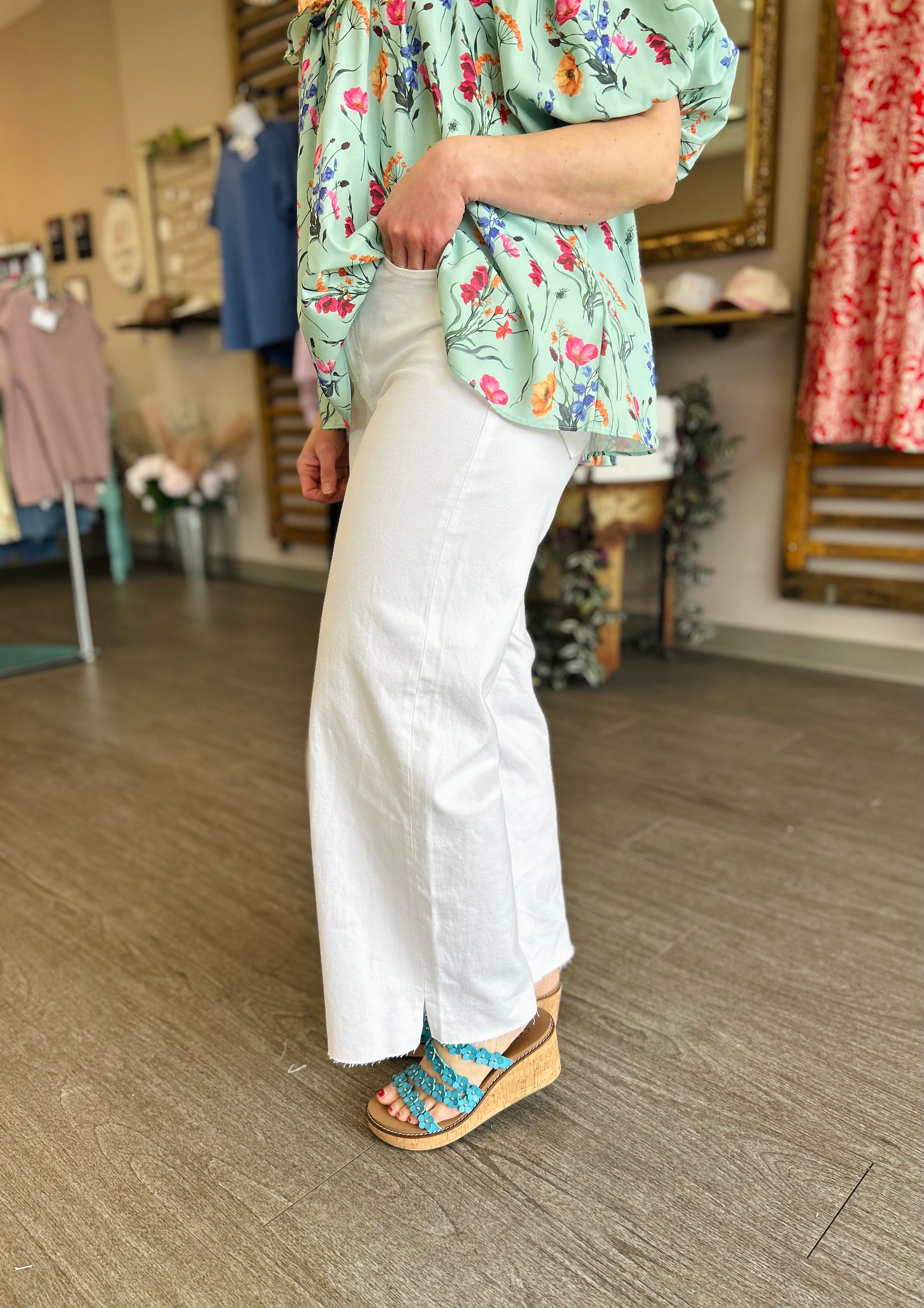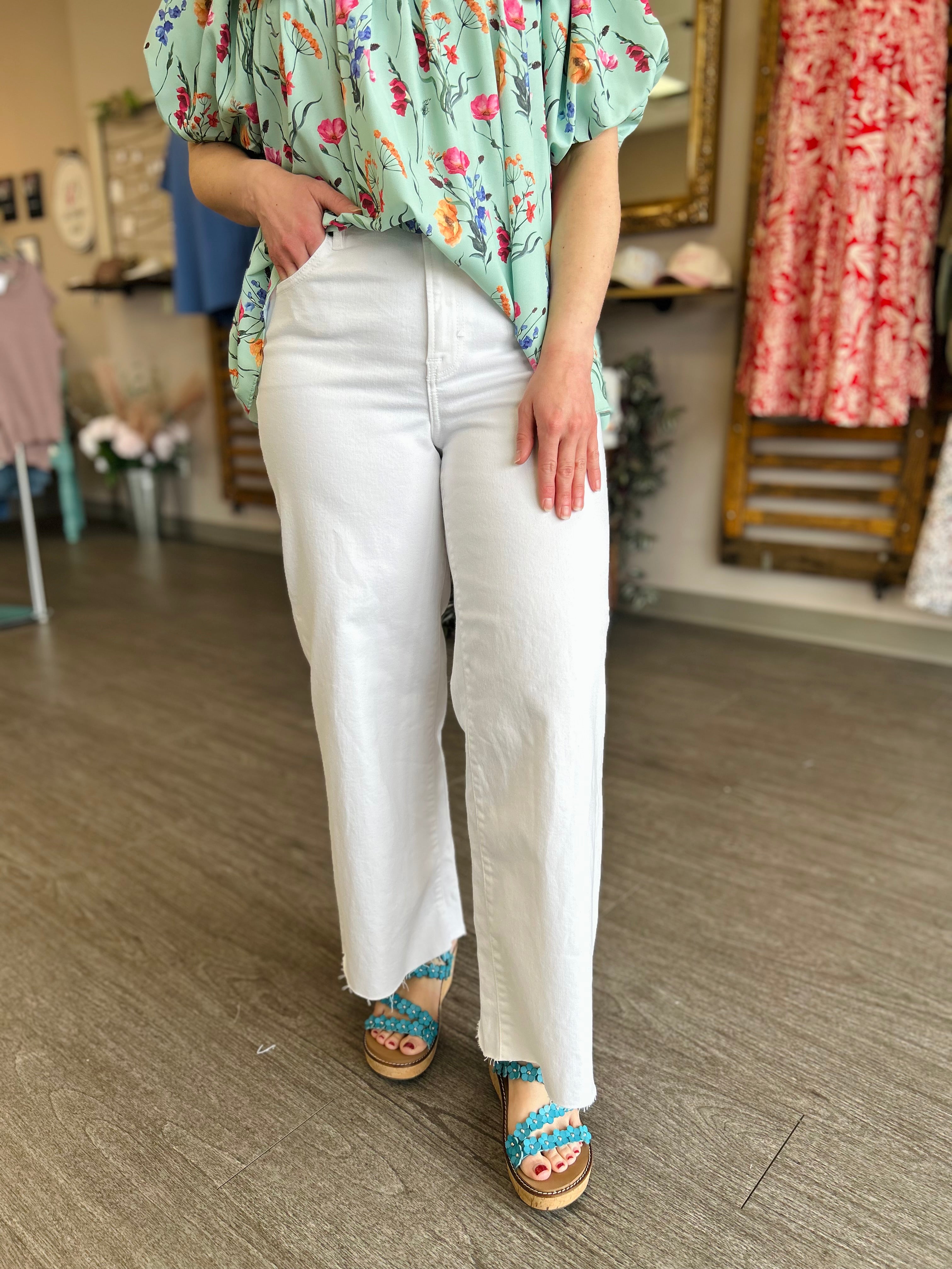 White High Rise Cropped Wide Leg