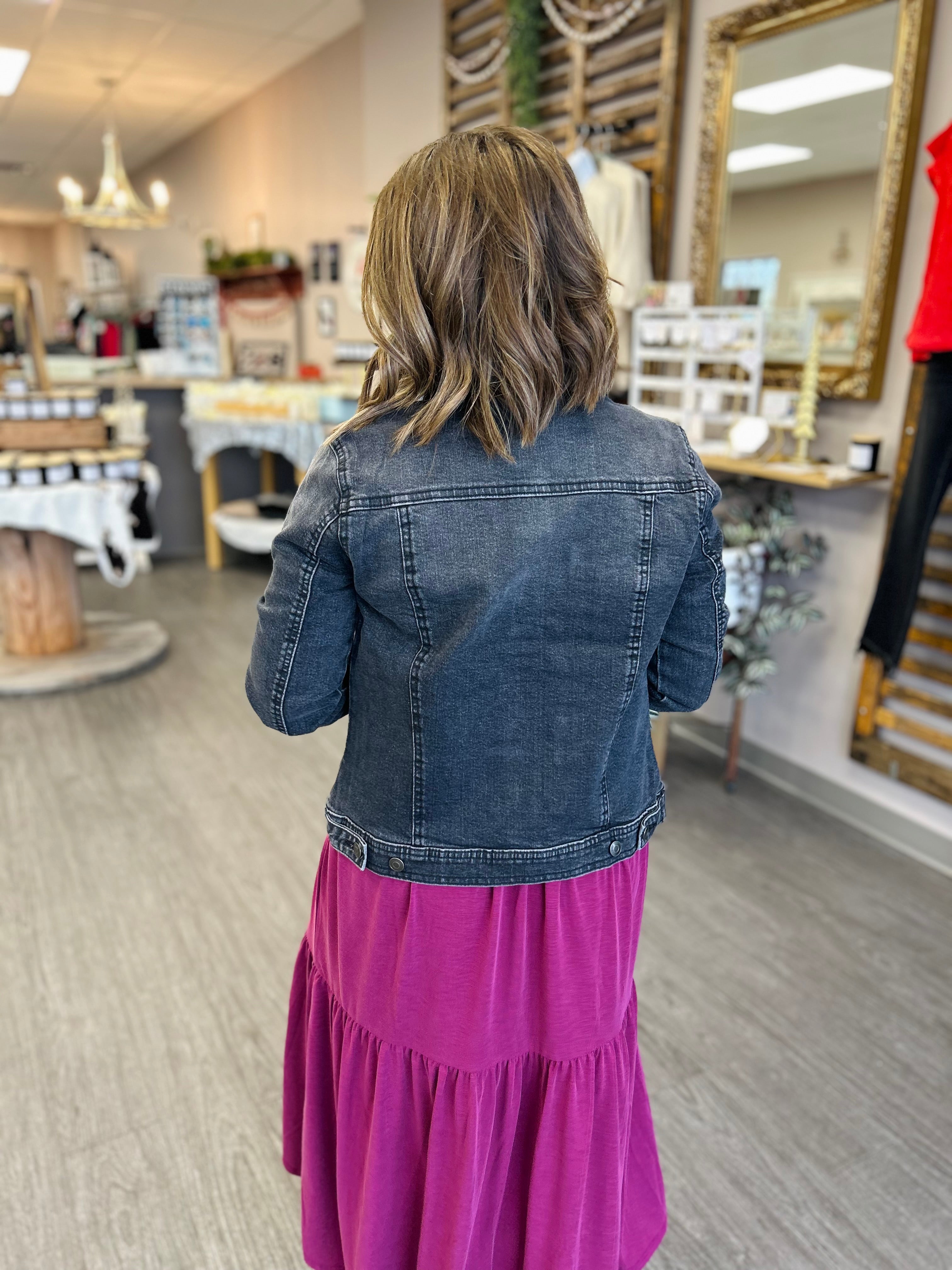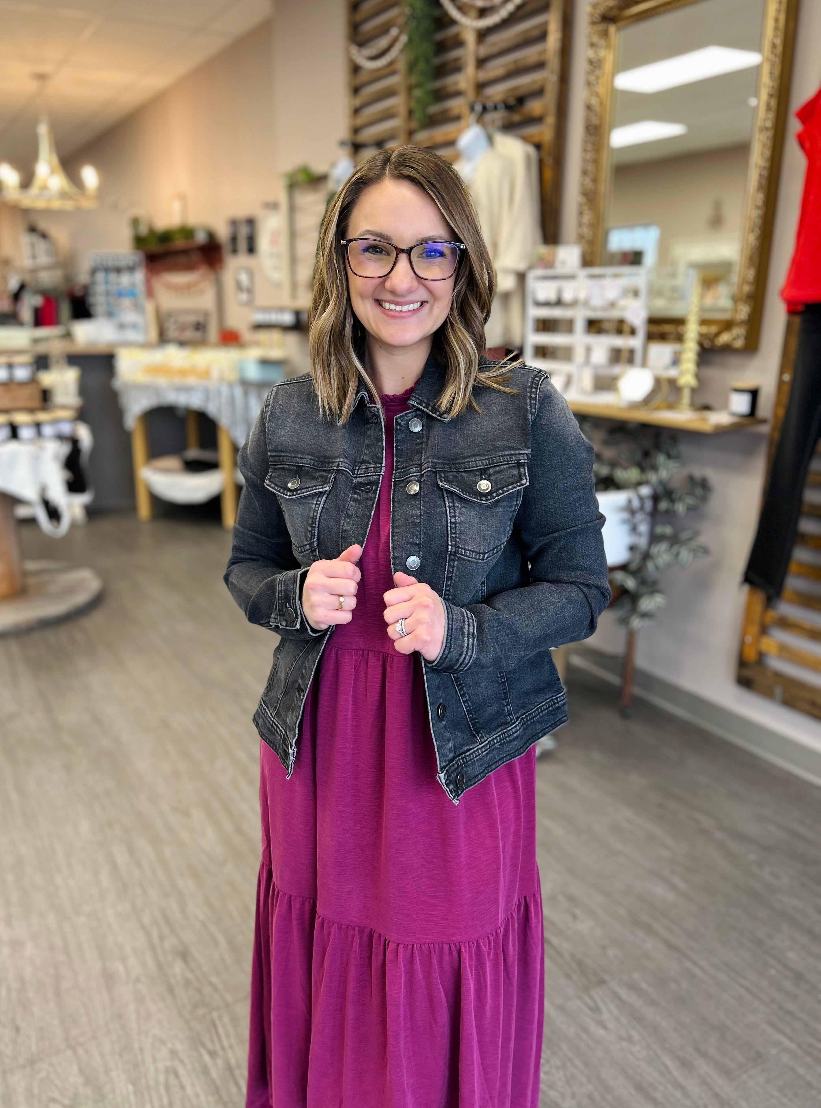 A timeless layer with an effortlessly cool edge — the Washed Black Trucker Denim Jacket is a must-have for every wardrobe. Featuring a relaxed fit, classic button-front design, and perfectly faded black wash, this jacket adds the right amount of attitude to any look. Throw it over your favorite tee, dress, or sweater for year-round style that never goes out of season.