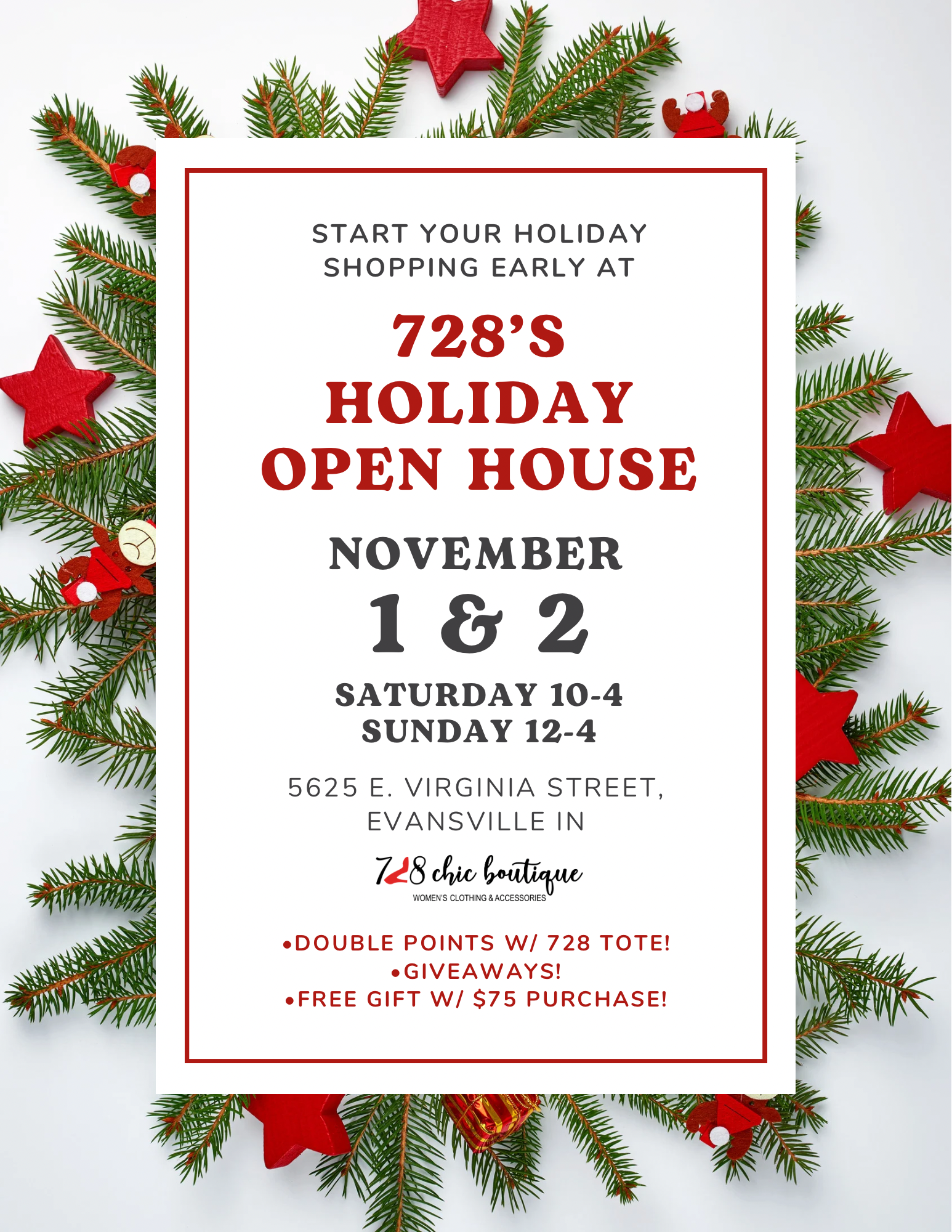 Please send returns to:Â 728 Chic Boutique, 5625 E. Virginia St., Suite F, Evansville, IN 47715