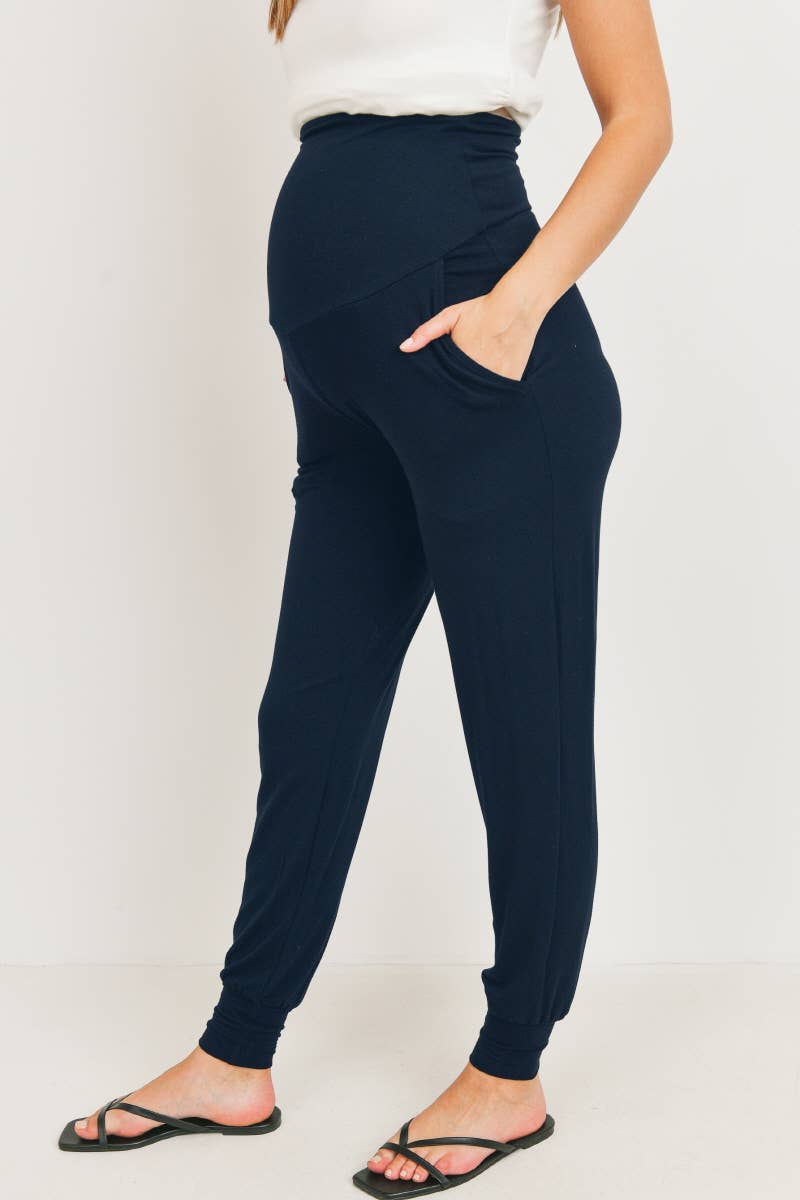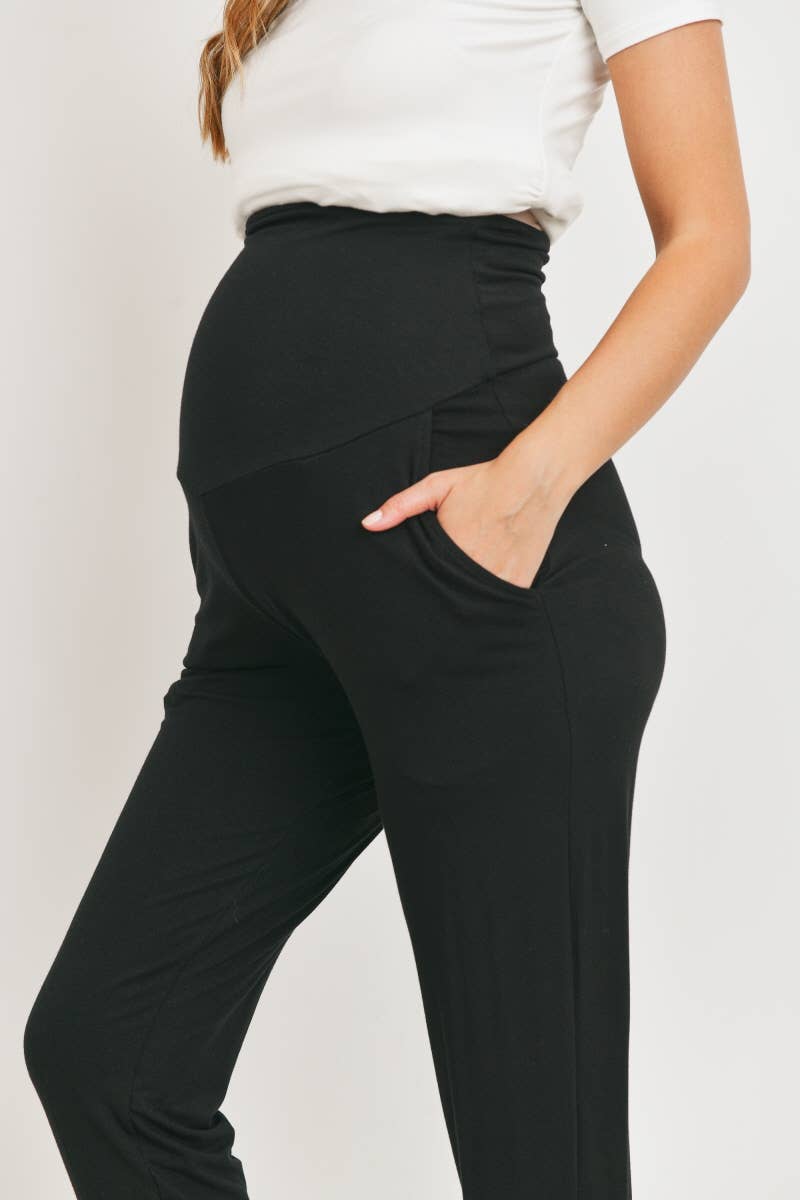 Wide belly cover band/side pocket/bottom band/stretchy. Rayon Modal Full Panel Maternity Jogger Pants with Side Pockets