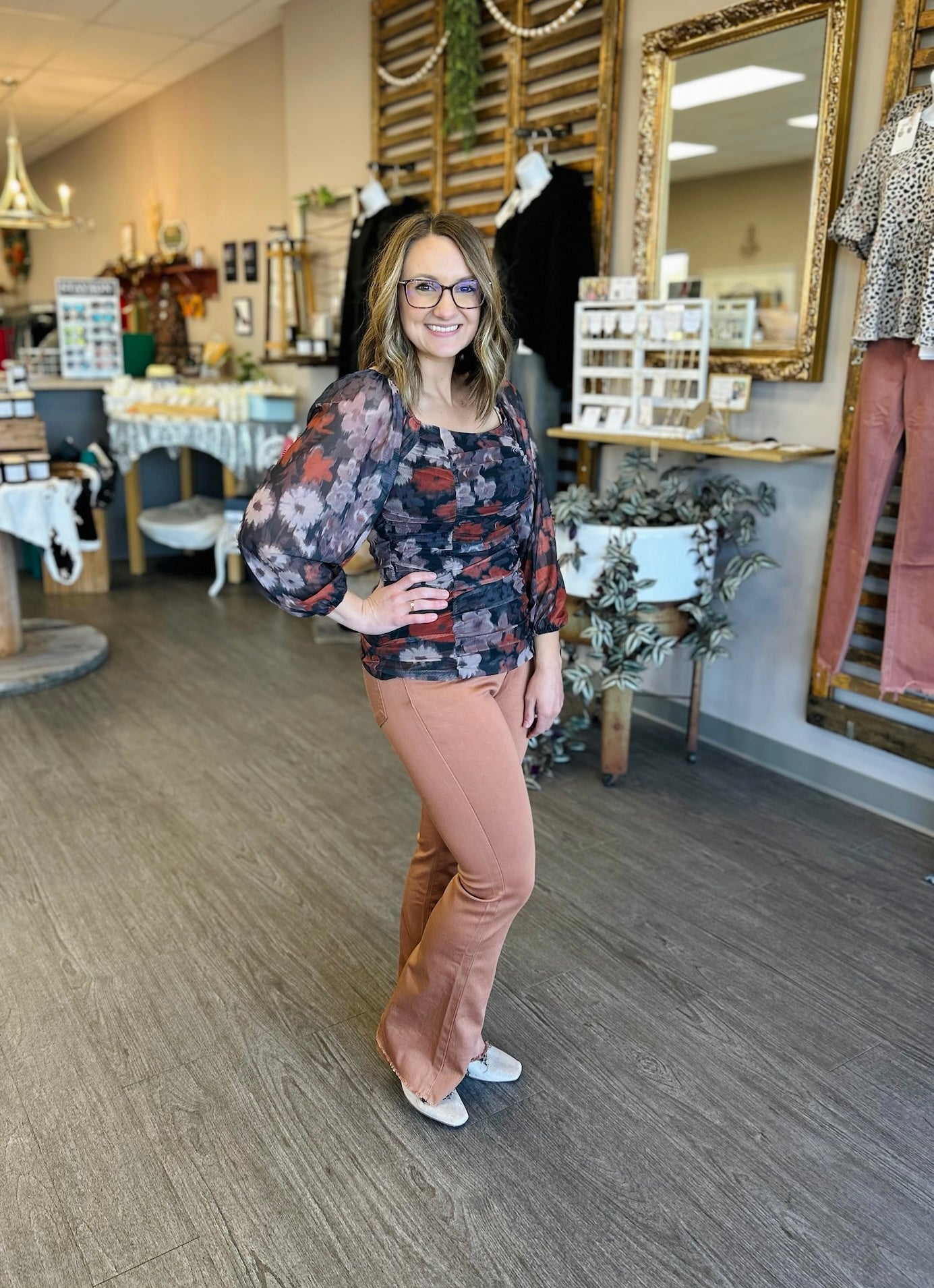 Embrace cozy-chic vibes with the Autumn Dreaming Ruched Floral Top. Featuring a soft, flowy fabric with delicate ruched detailing and a dreamy floral print, this top is perfect for layering or wearing on its own. Its warm, autumn-inspired tones make it an effortless pick for seasonal outings, from coffee dates to weekend adventures!