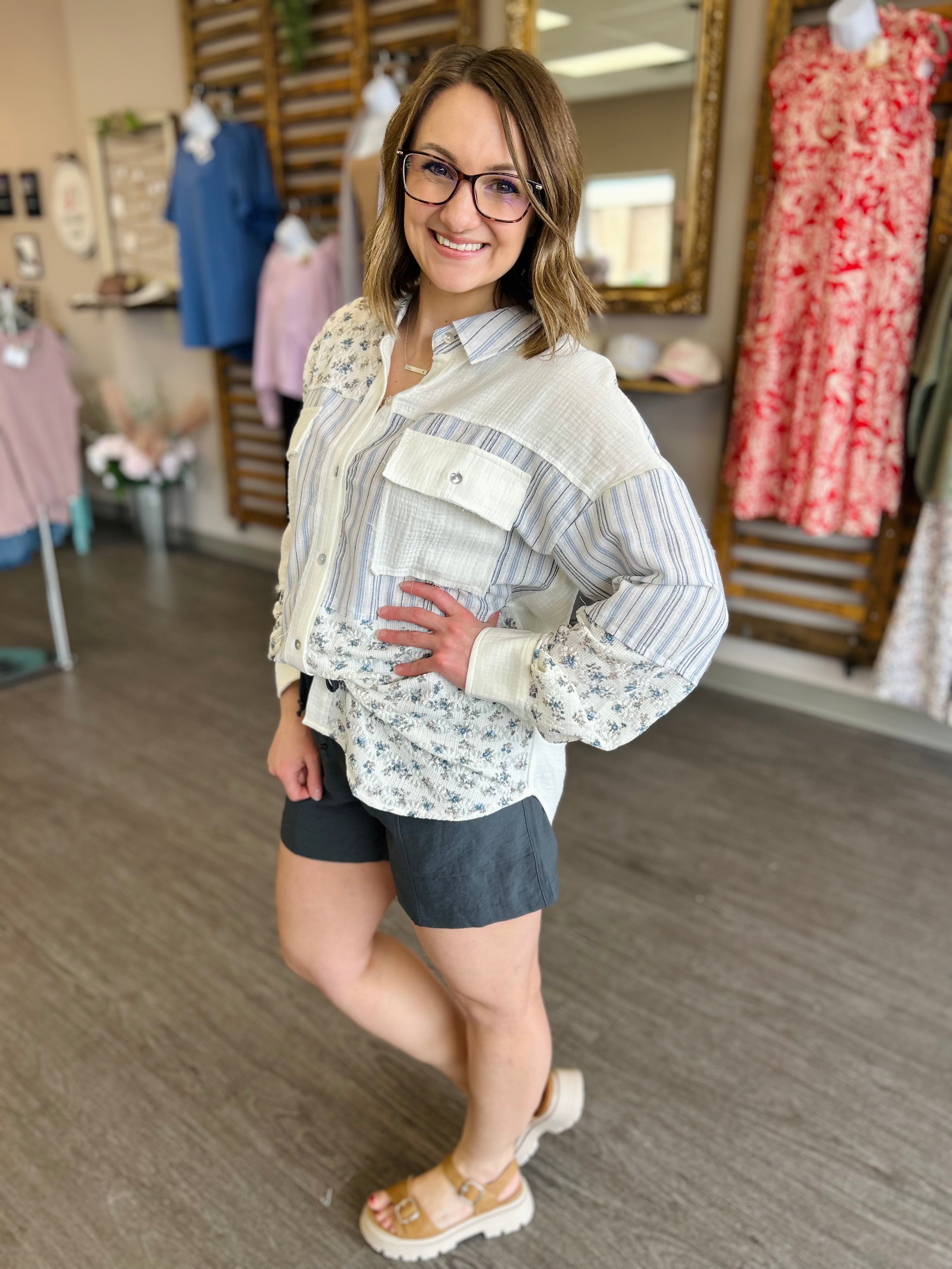 Bluebell Patchwork Button-Down Top