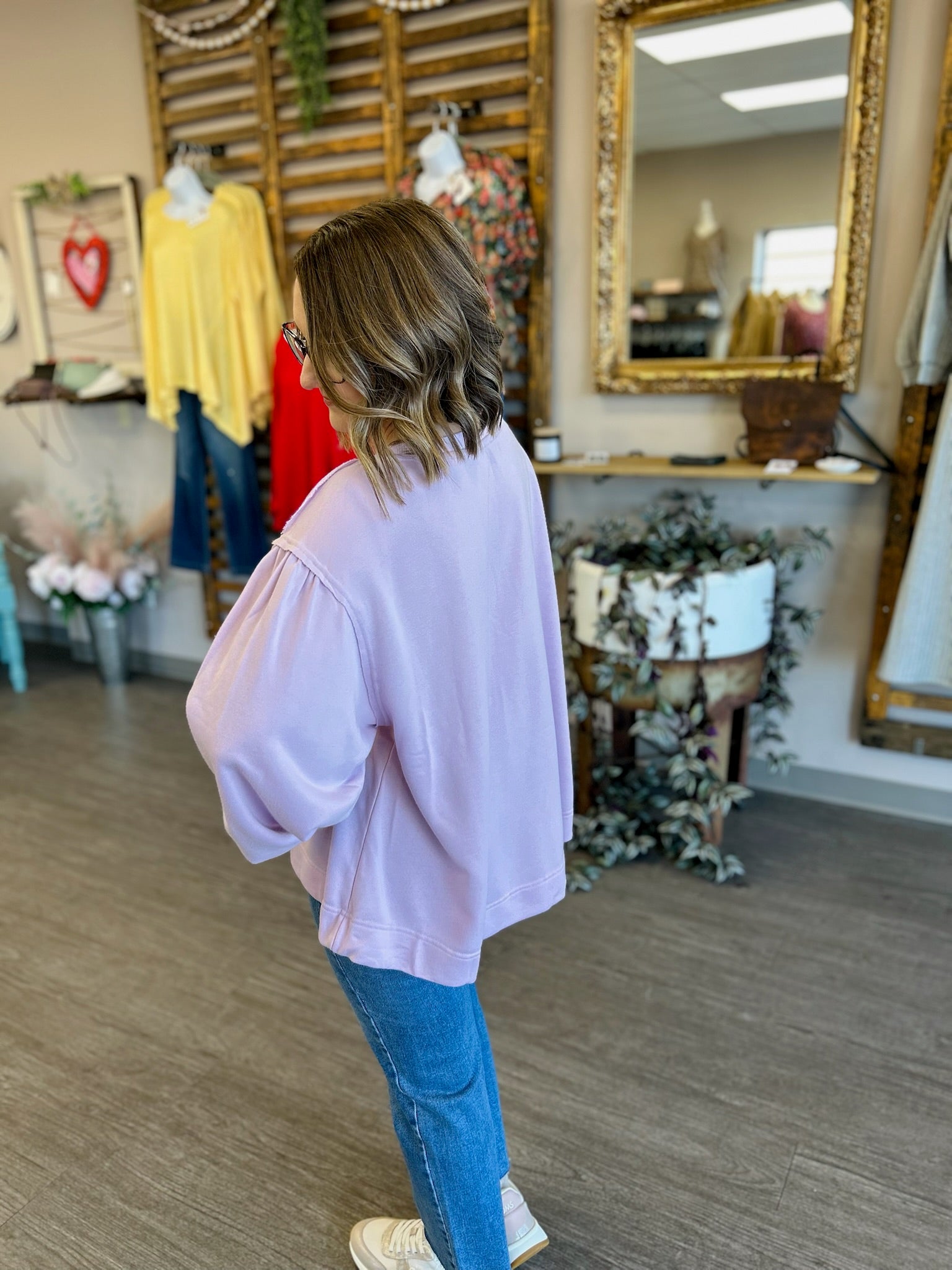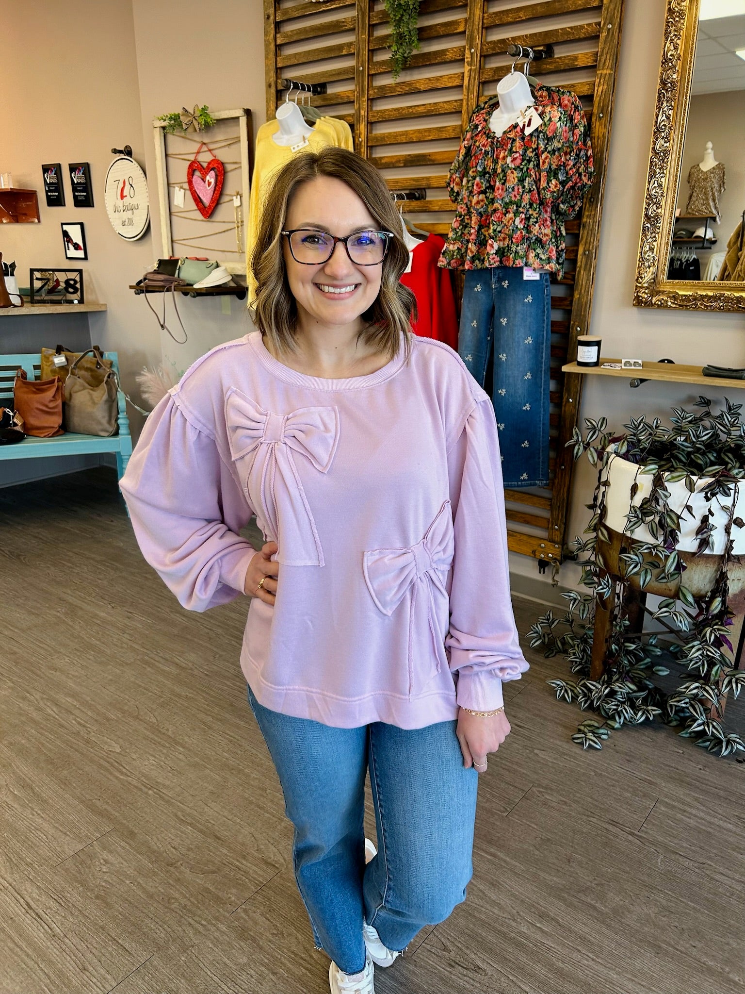 The Lilac Daydream Bow Pullover is a cozy, feminine piece that adds a soft touch of charm to your everyday wardrobe. Designed in a dreamy lilac hue, this pullover features delicate bow details that bring a playful yet polished accent to the relaxed silhouette. Crafted from a comfortable, soft fabric, it’s perfect for layering or wearing on its own. Easy to style with denim, leggings, or skirts, this pullover delivers effortless comfort with a sweet, romantic flair.