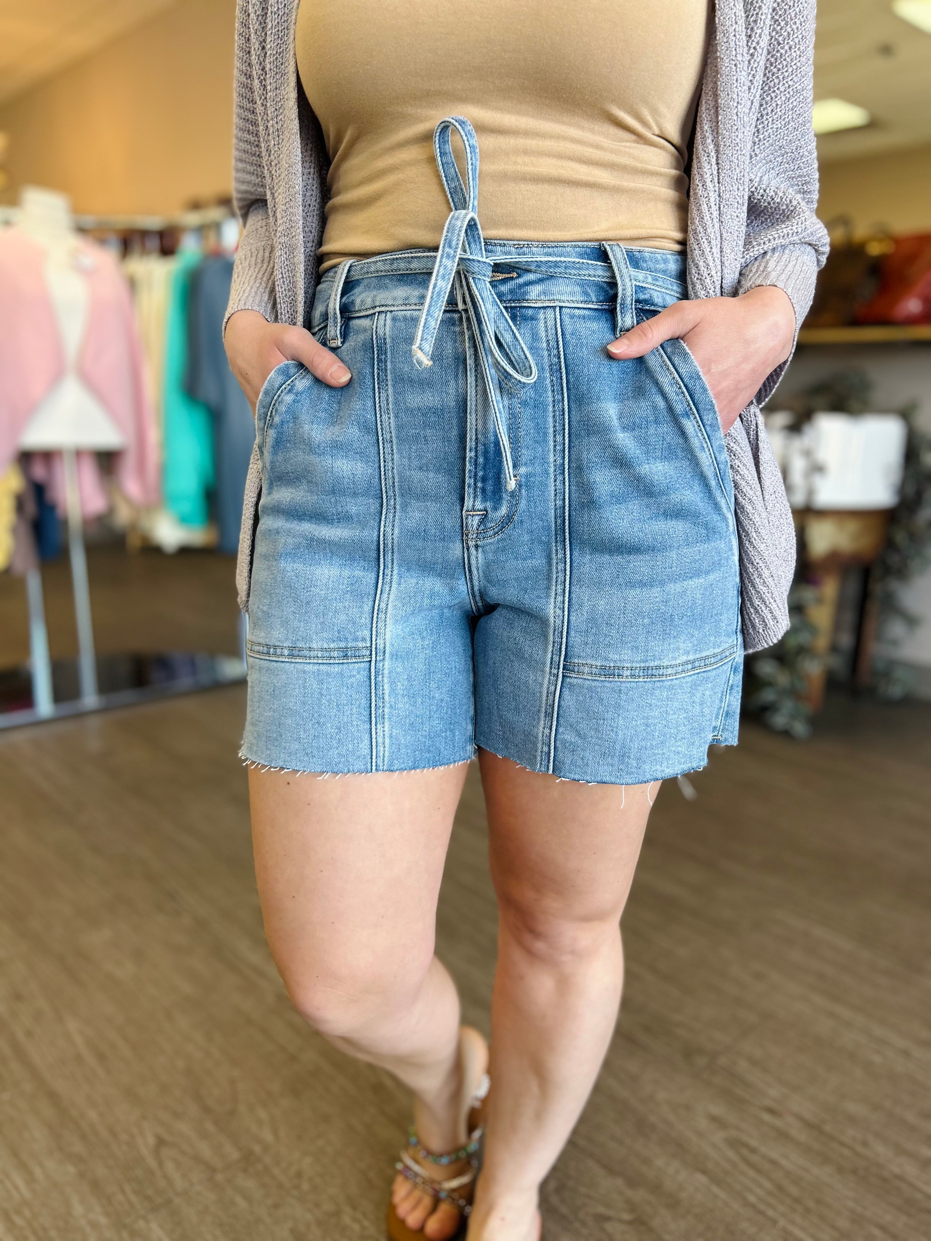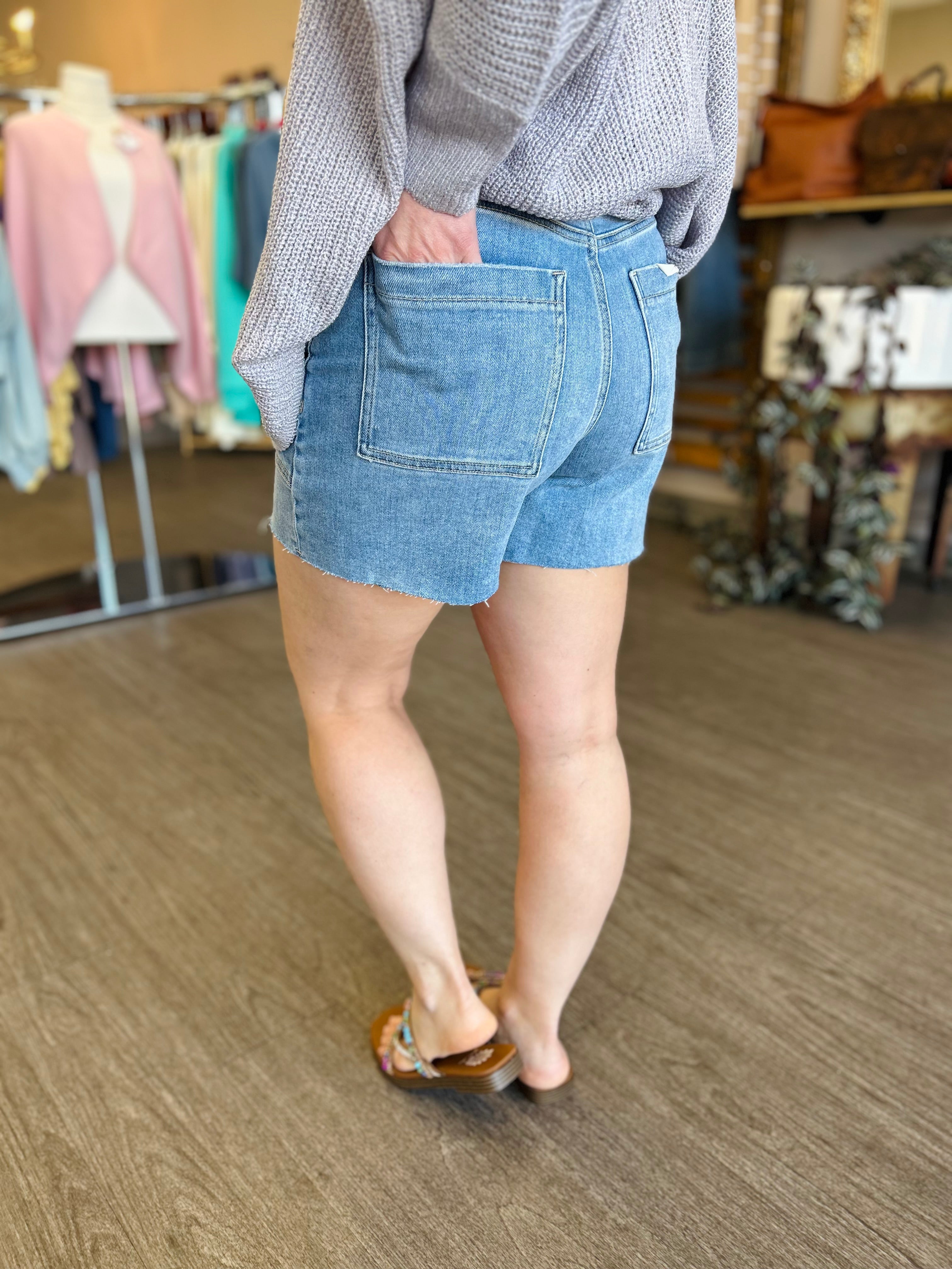 Medium Wash High Rise Shorts