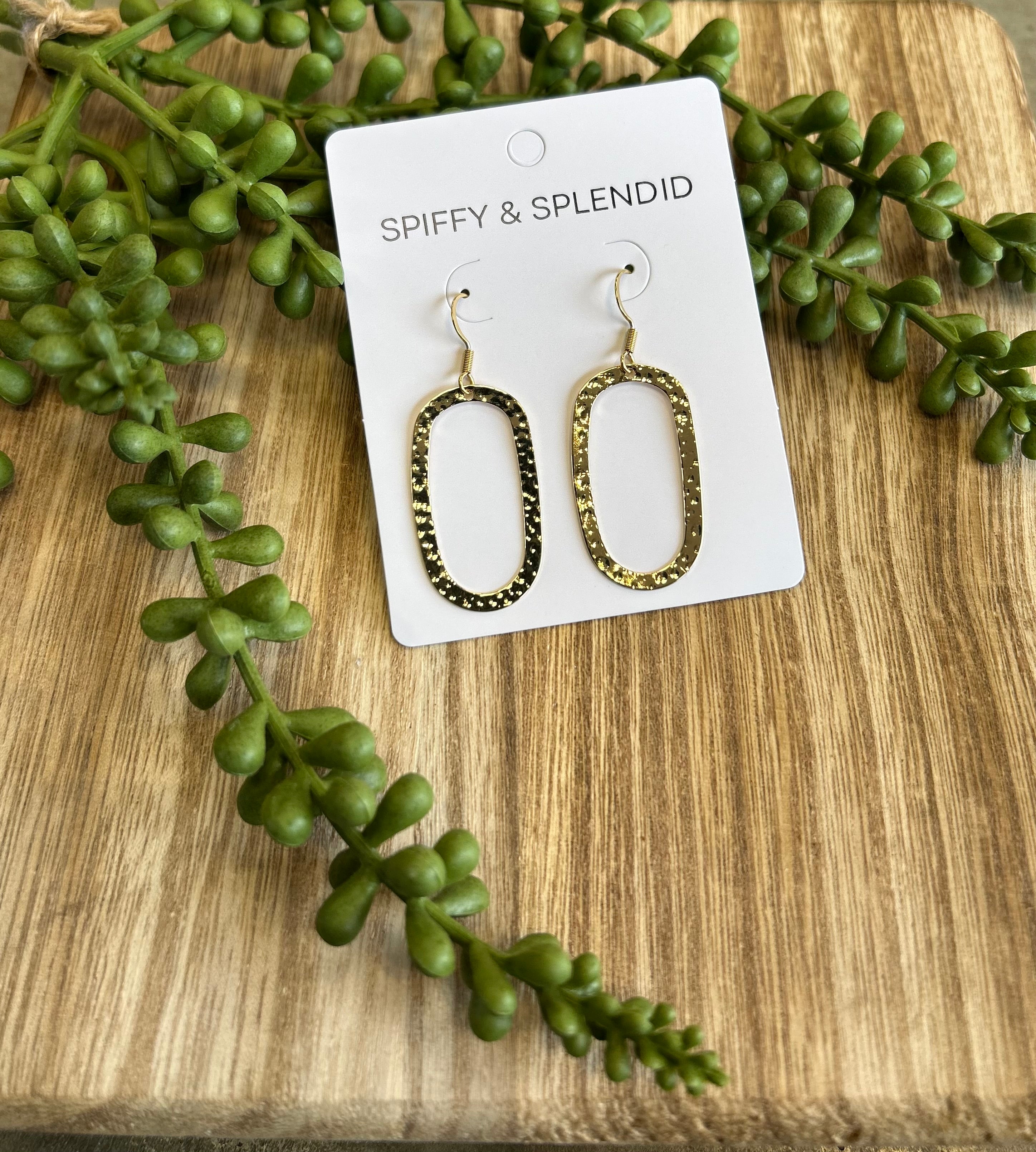 Dainty & Dramatic Sienna Earrings Meet the Sienna Earrings, the perfect blend of rustic charm and polished elegance. These statement earrings feature a dainty cutout oval shape and a unique hammered brass texture that catches the light with a beautiful, dimensional effect. Finished with a rich gold plating, they offer a sophisticated glow that's both modern and timeless.