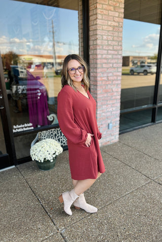 Cinnamon Haze Balloon Sleeve Mini Dress