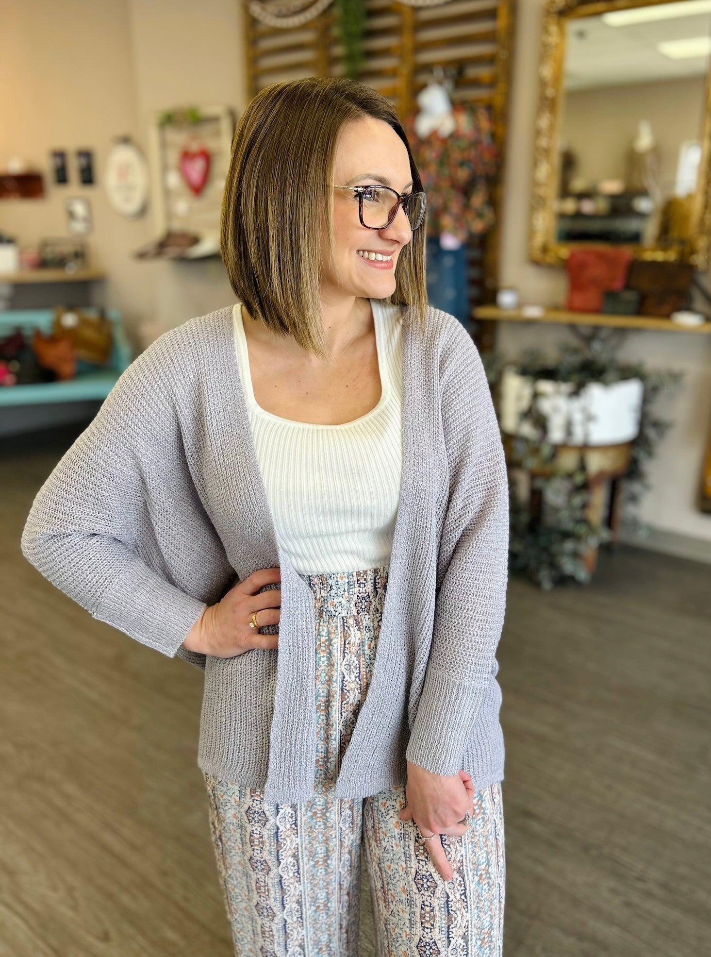 Soft, serene, and effortlessly elegant, the Graceful Lilac Dolman Cardigan is the perfect blend of comfort and charm. Designed with relaxed dolman sleeves and a beautifully draped silhouette, this cardigan offers a flattering, easy fit that moves with you. The soothing lilac hue adds a delicate pop of color, while the lightweight knit makes it ideal for layering year-round. Finished with an open-front design, it pairs seamlessly with casual basics or dressier pieces for a look that feels polished yet wonderfully relaxed.