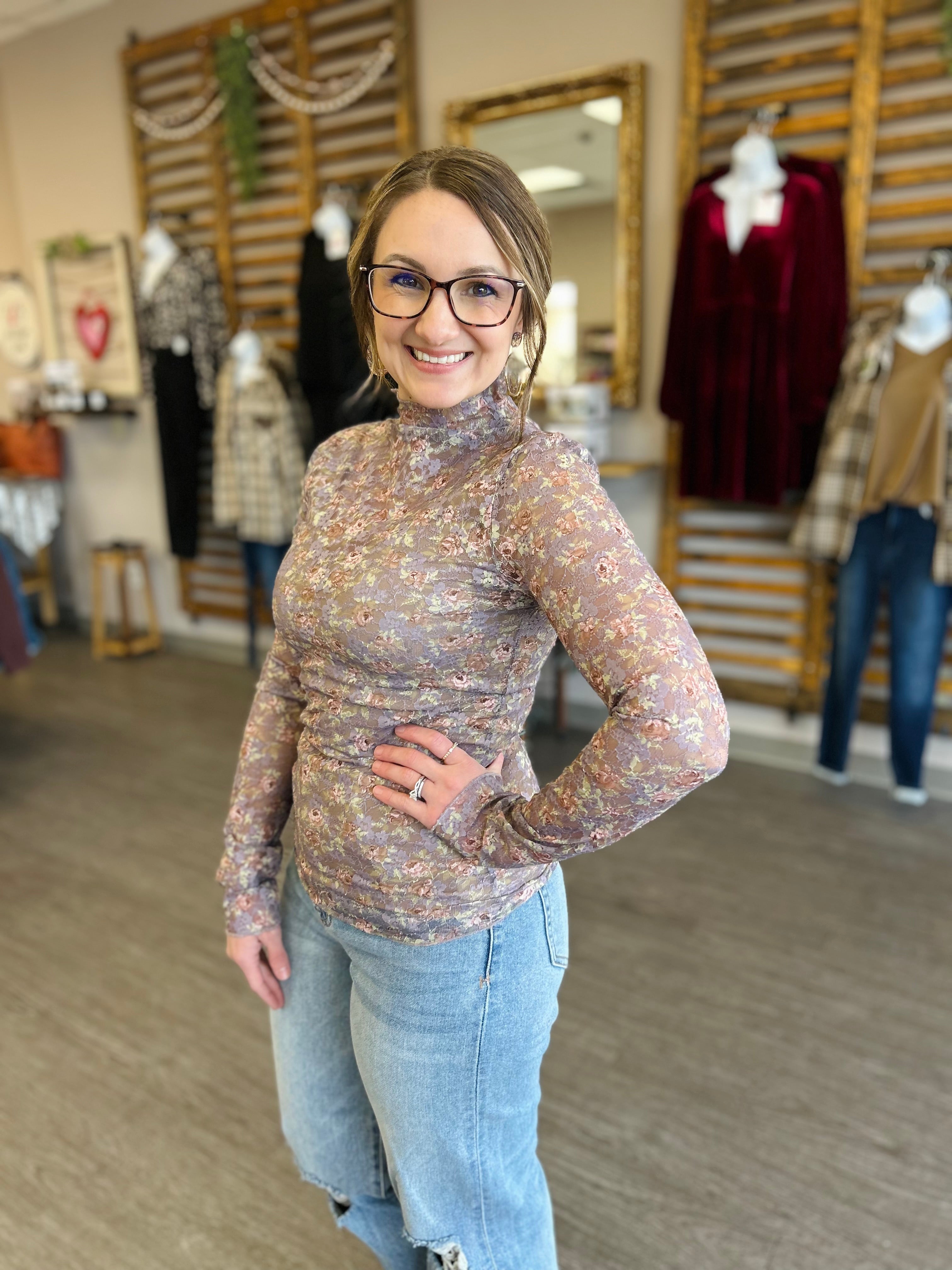 Delicate and effortlessly romantic, the Lavender Garden Lace Top brings a touch of ethereal charm to any outfit. Crafted in a soft lavender hue with intricate floral lace detailing, this high-neck top offers a graceful, feminine silhouette. The lightweight, sheer fabric creates an airy feel, perfect for layering over a camisole or pairing with a sweater, for an elegant look. Ideal for both day and evening occasions, this top pairs beautifully with tailored bottoms or skirts, adding a subtle pop of color and timeless sophistication to your wardrobe.