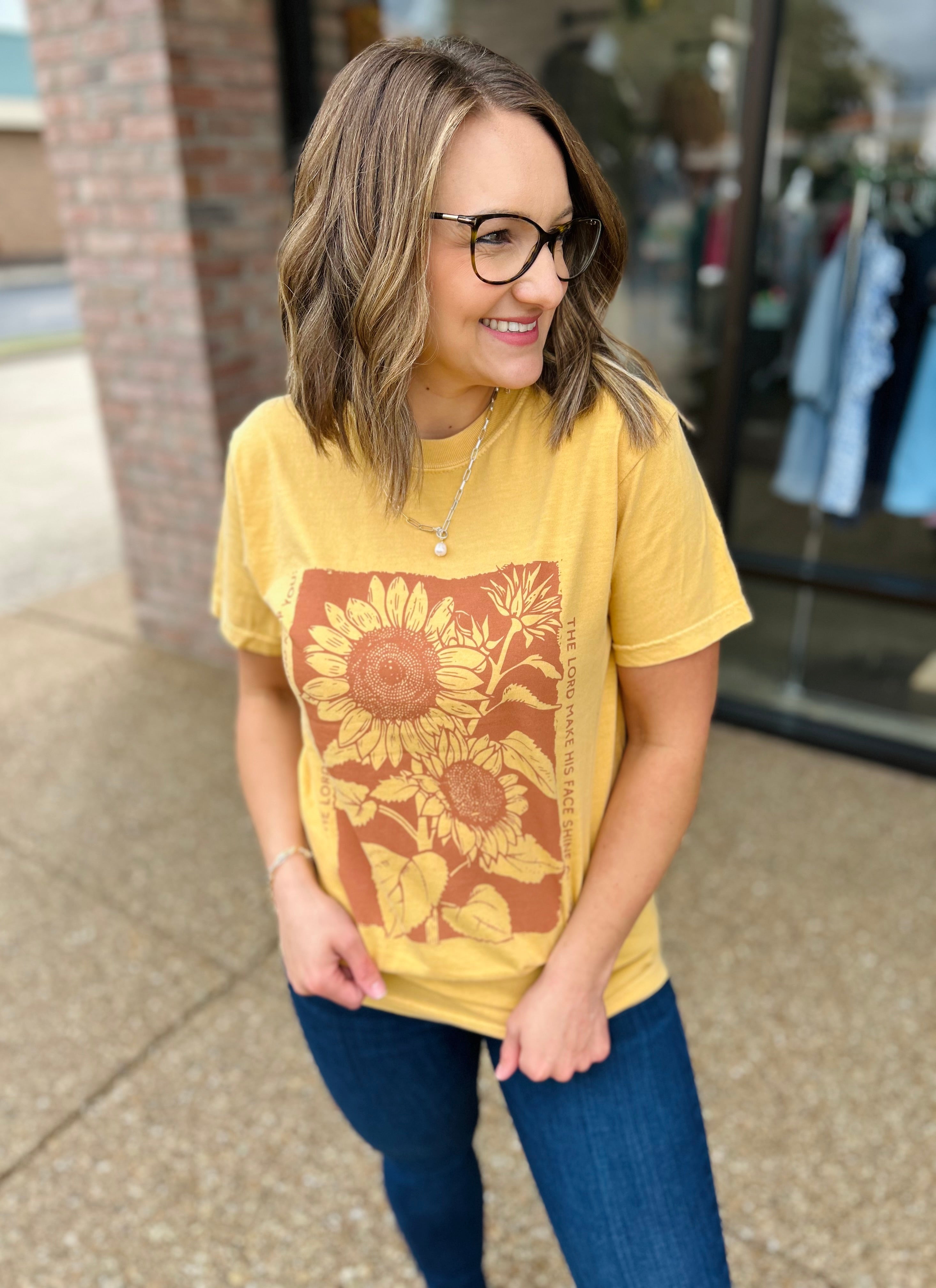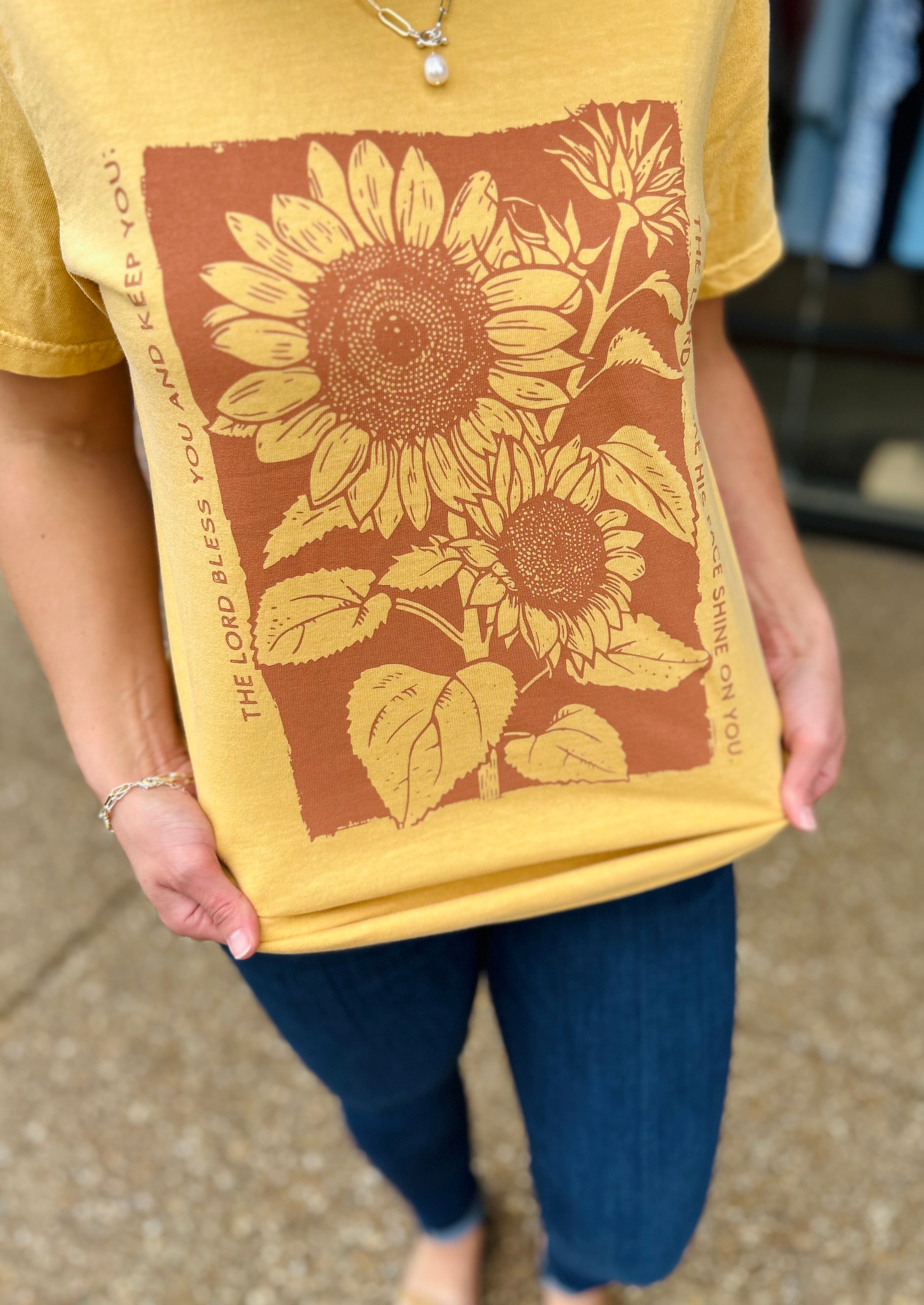 This beautiful tee features hand-drawn sunflowers paired with the timeless blessing from Numbers 6:24–25: “The Lord bless you and keep you; the Lord make His face shine on you.” Printed on a soft, garment-dyed Comfort Colors shirt, it offers a relaxed fit and vintage feel—perfect for everyday wear. A meaningful piece that speaks hope and faith in every season.